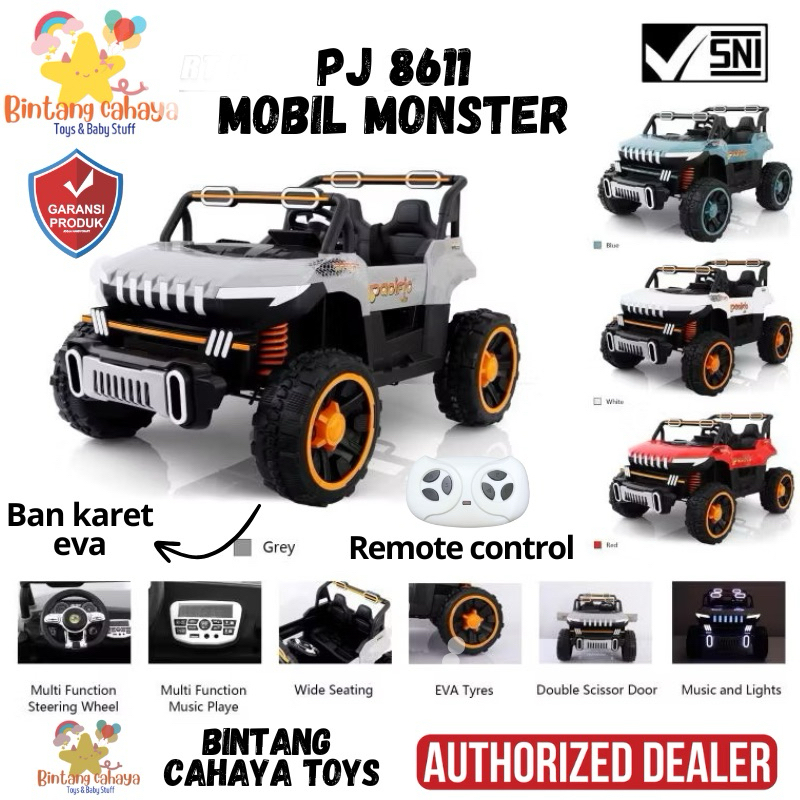 (FREE KARPET ALAS KAKI) Mobil Aki anak Super besar Monster Pacific PJ 8611 8618 Mobil listrik Cas ces an