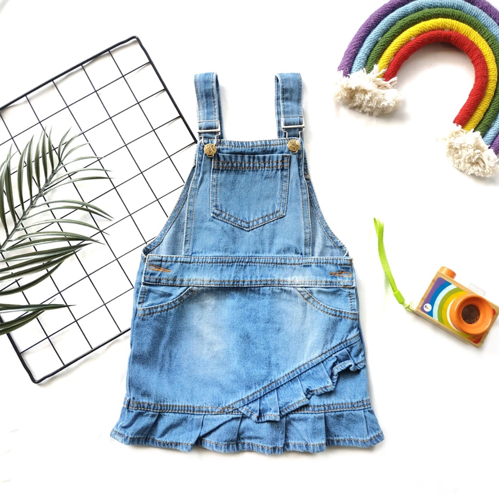 Overall Rok Jeans Anak / Overall Anak Motif Flamingo Helo Kitty Unicorn / Jumpsuit Jeans Motif Bordir