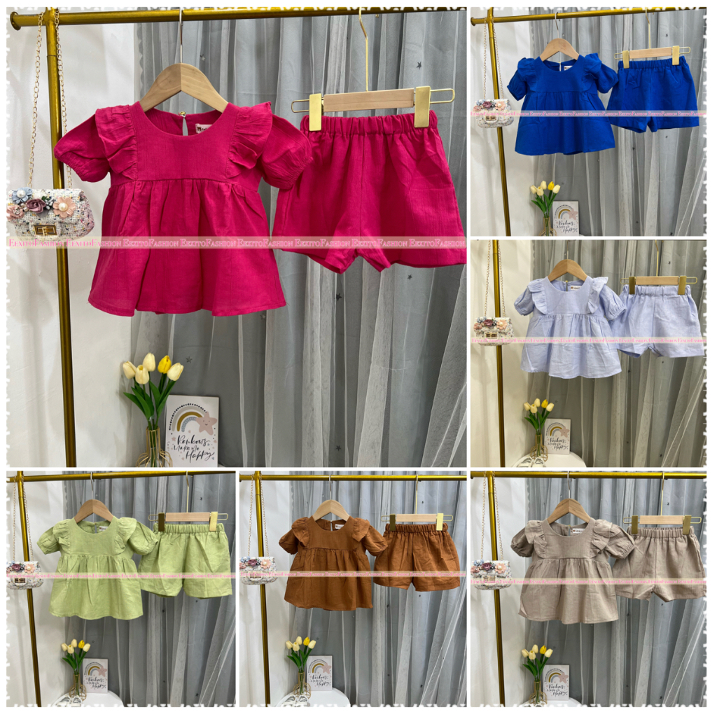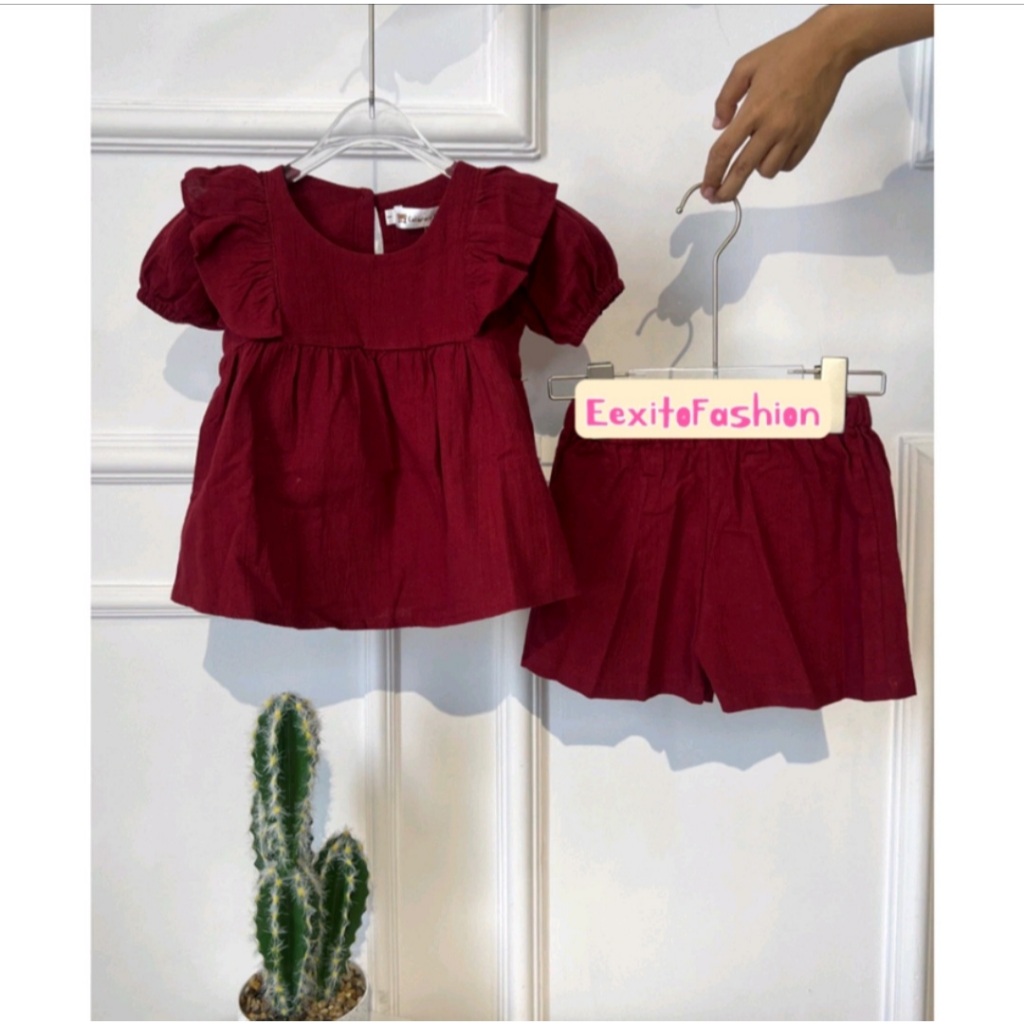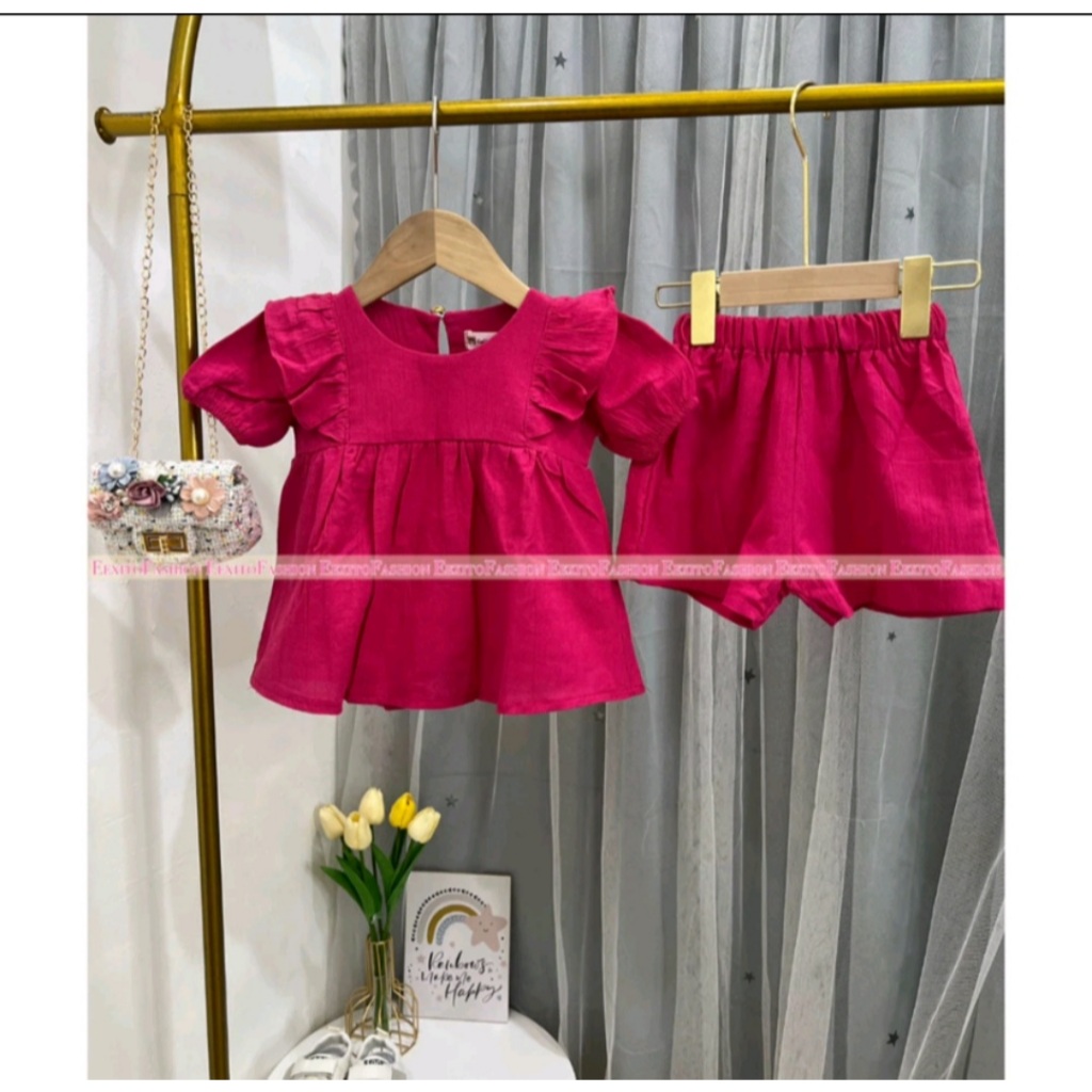 Set Ruffle Peplum | Setelan Linen | Outfit Anak Perempuan | Fashion Anak