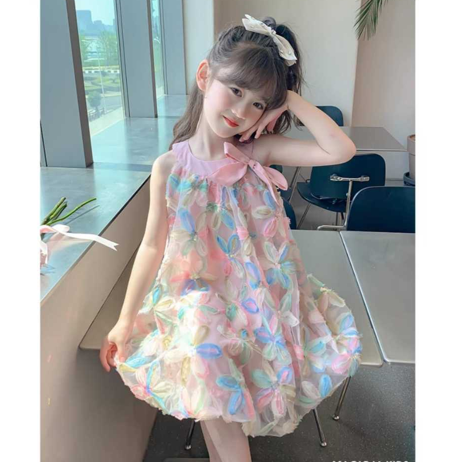 Dr108-Dress Gaun Anak Perempuan Motif Bunga Timbul 3D Mutiara Sleeveless