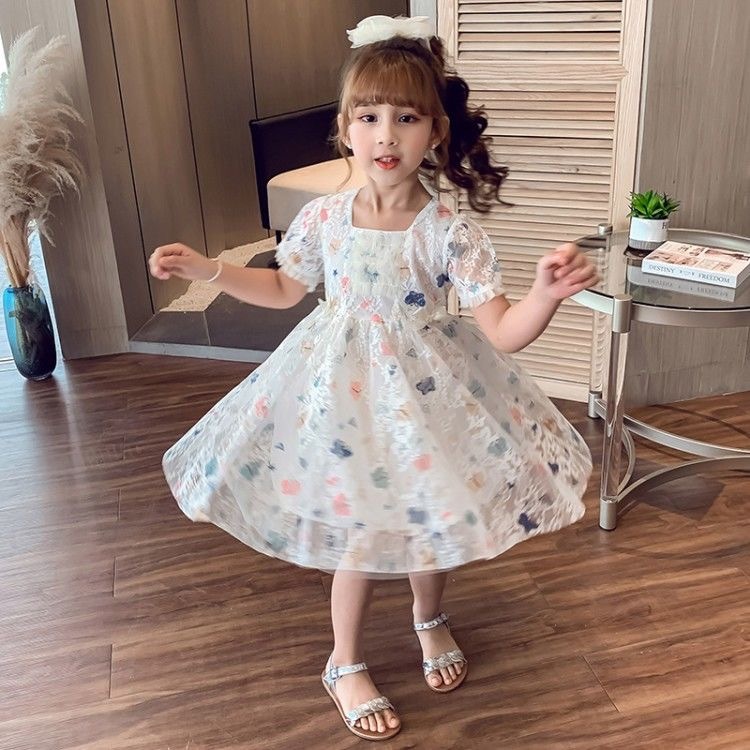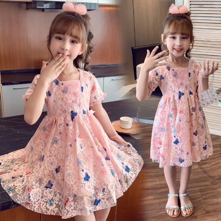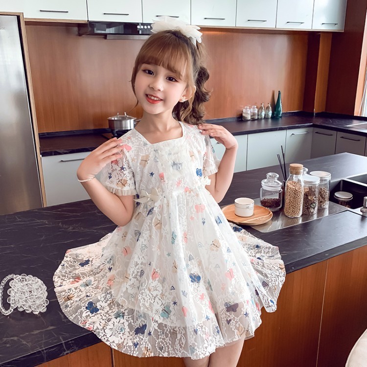 1-11 Tahun Dress Brukat Butterfly Gaun Anak Perempuan Sifon Katun Kids Cewek Princess