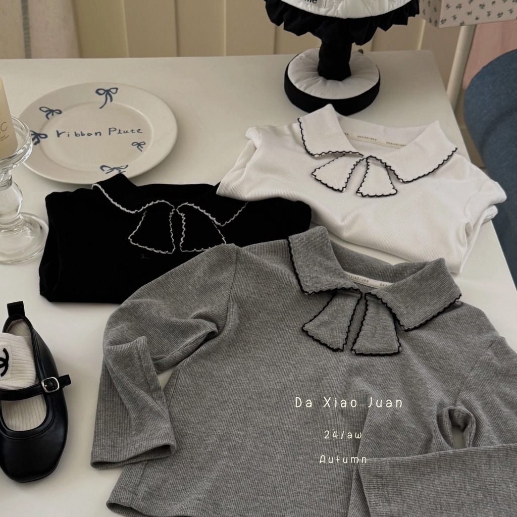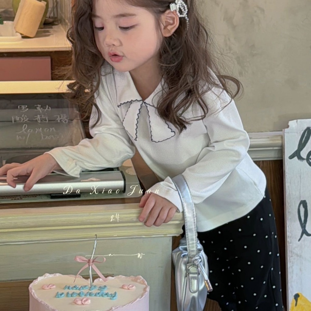 1-11 Tahun Kaos Lengan Panjang Anak Perempuan Motif Pita 2025 Atasan Kerah Manis Bayi Musim Semi Dan Musim Gugur Bawahan
