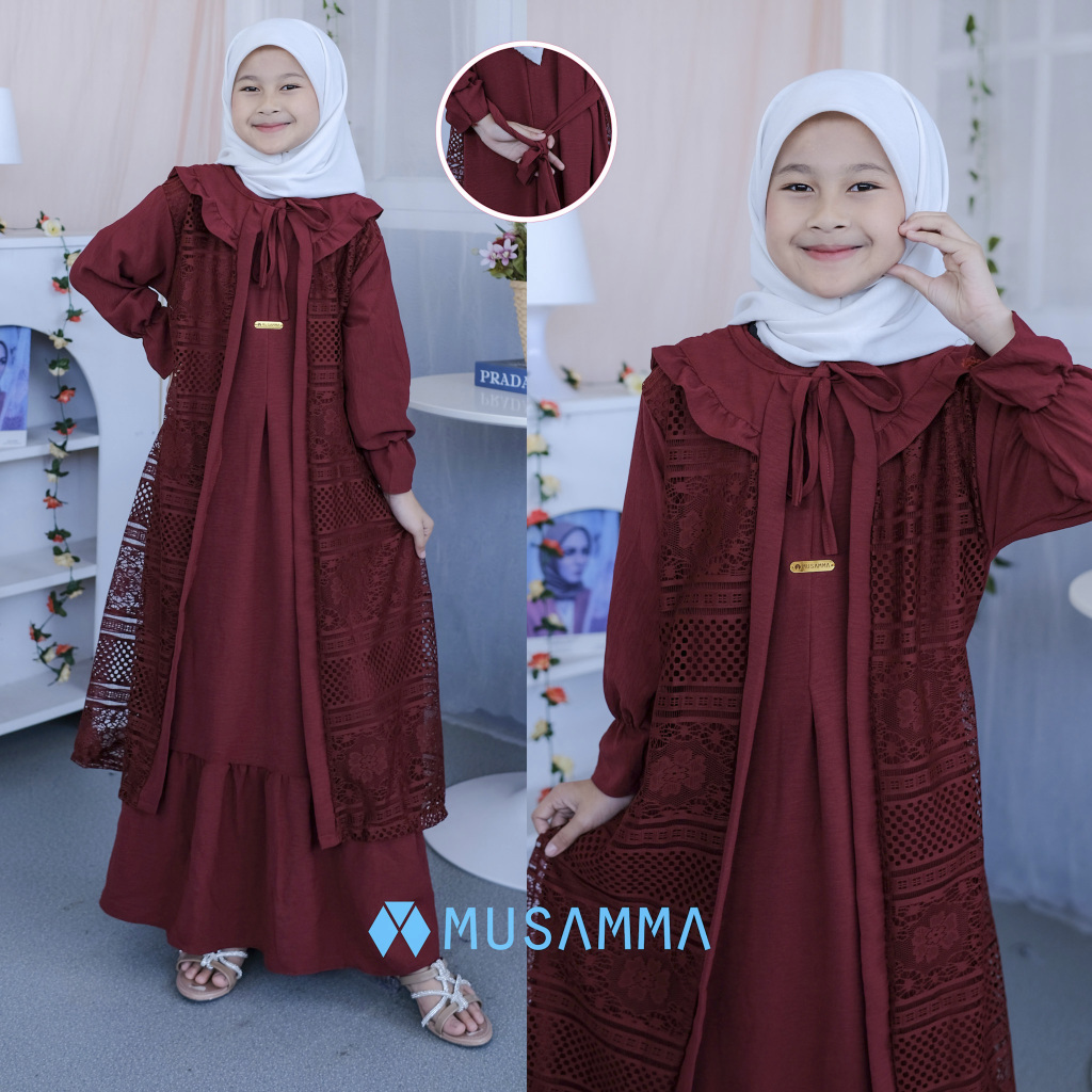 gamis anak perempuan DRESS ANAK MAYRA - Dress Anak Tanggung Airflow Crincle Premium mix Brukat Malika Couple terlaris