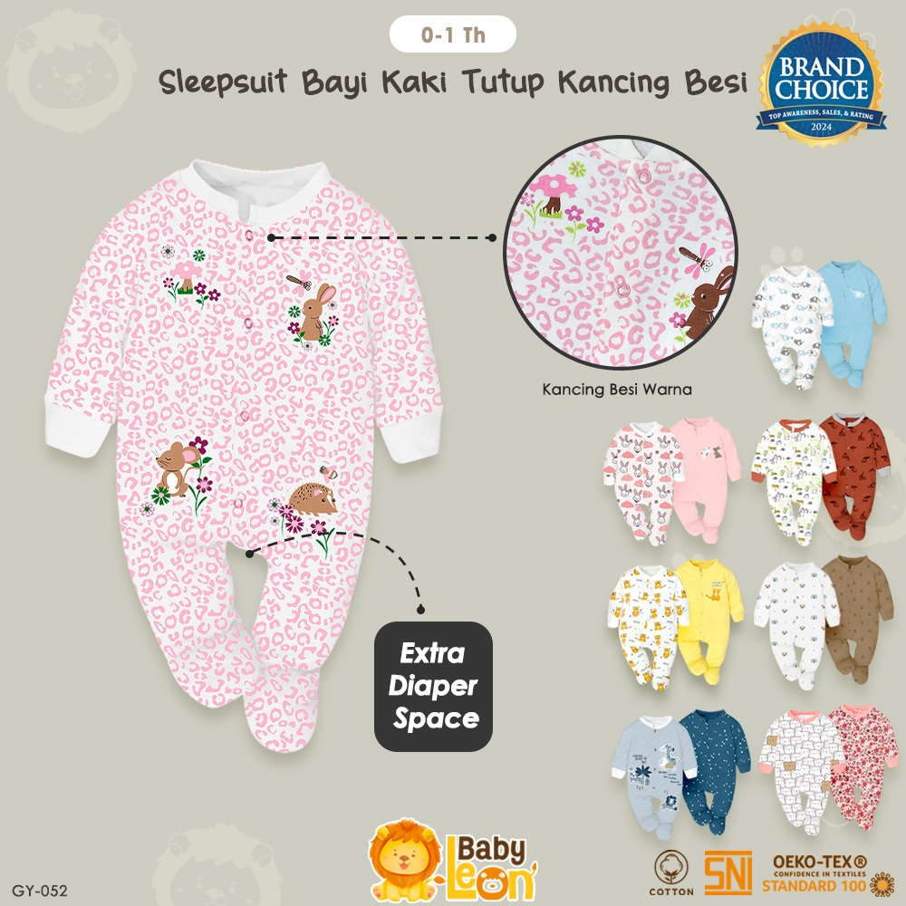 BABY LEON SLEEPSUIT BAYI TUTUP KAKI SLEEPSUIT NEWBORN BAJU ANAK PEREMPUAN 0 12 BULAN GY-052
