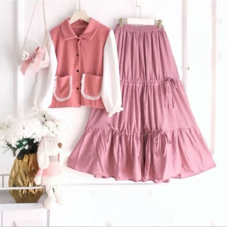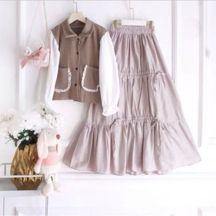 gamis anak perempuan Setelan rok anak prempuan 3-12thn-Amiko set kids crinckle airflow.setelan rok terbaru 2025 terlaris
