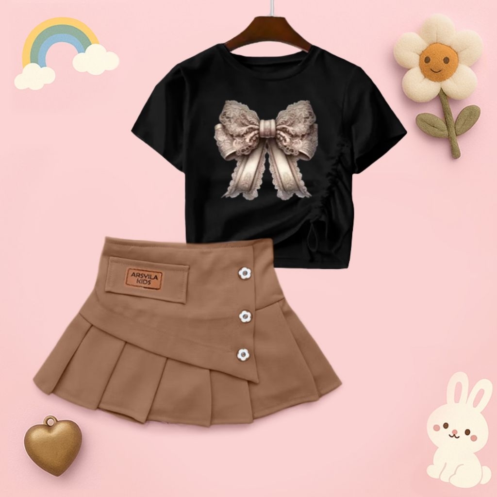 Arsyila Kids Oneset Queen Setelan Kaos Crop Anak Perempuan Usia 8Bulan - 8 Tahun