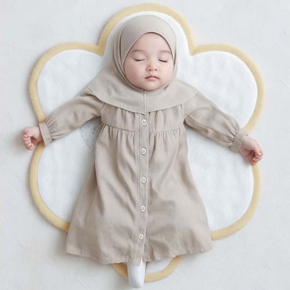 Asna - Gamis Bayi Perempuan 0-18 Bulan Setelan Hijab Newborn Dress Jilbab Abaya