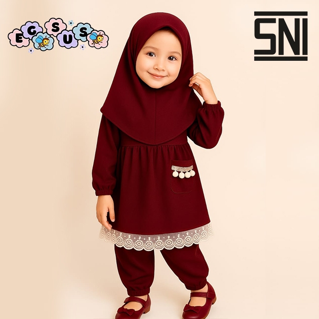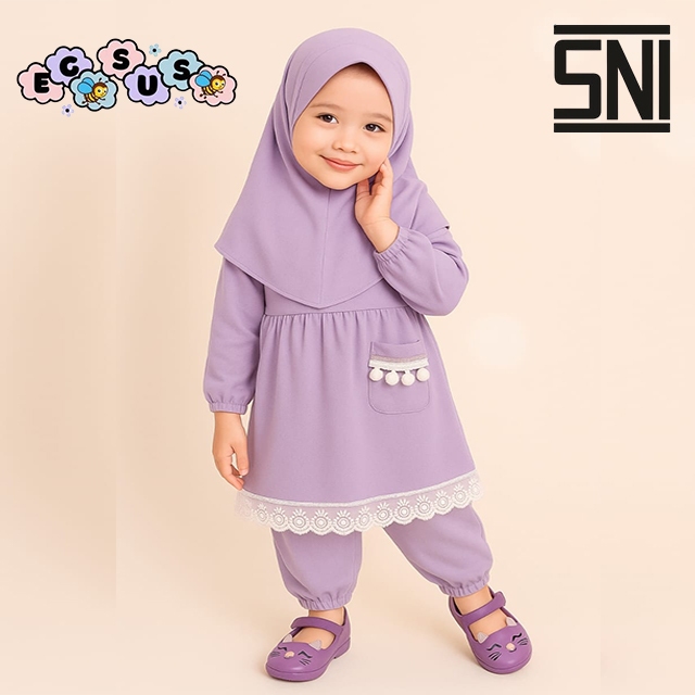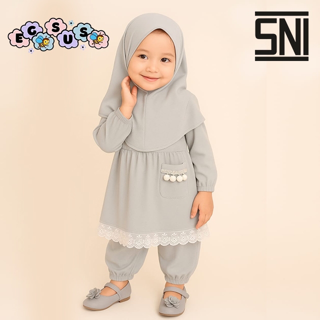(Egsus) Setelan Gamis Hijab Alena Bayi Anak Balita Renda Katun Spandek Jersey 0-2 Tahun Pakaian Sage