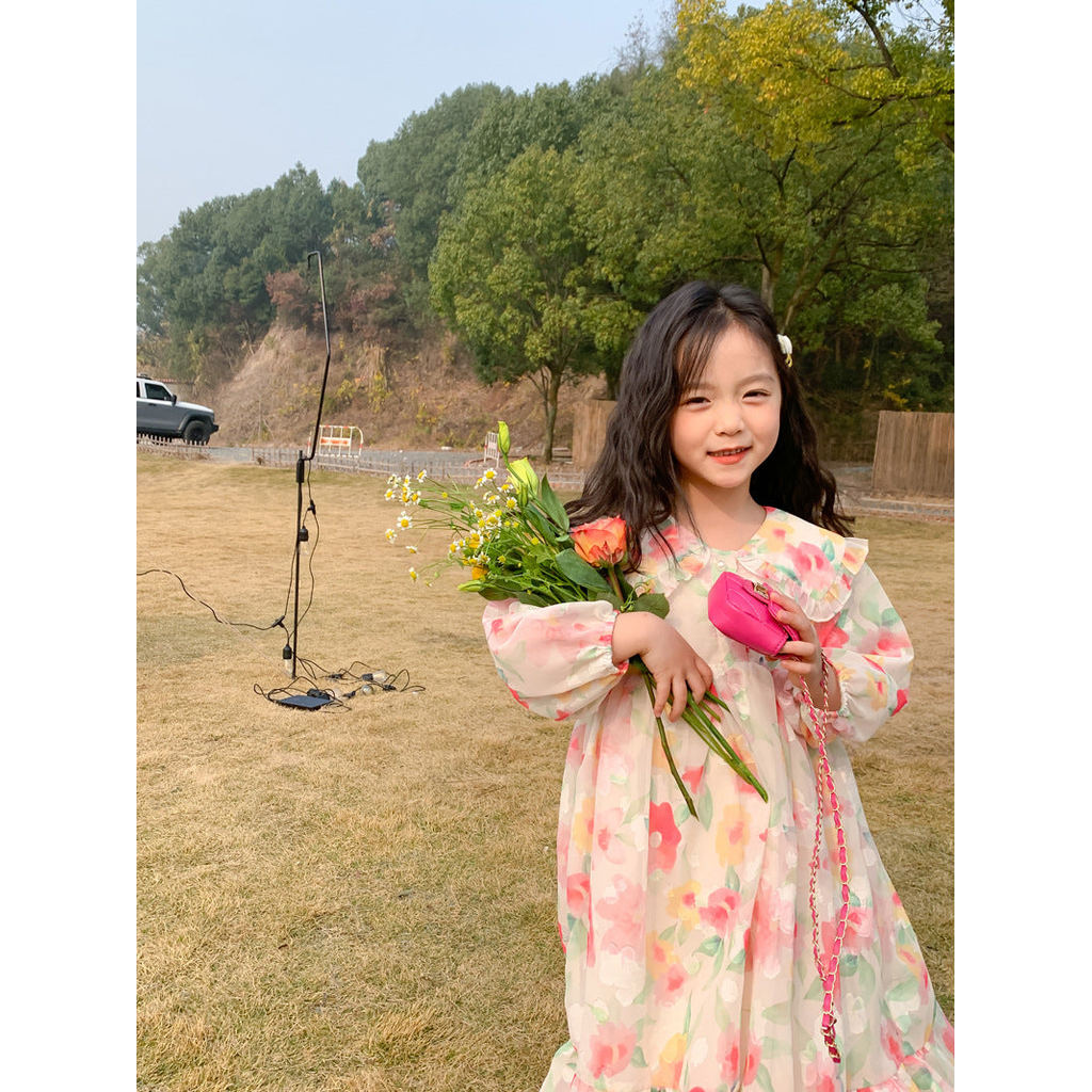 [363469] - Long Dress Anak Perempuan Lengan Balon – Gaun Piknik Cantik Floral Aesthetic Estetik - Motif Fading Flowers