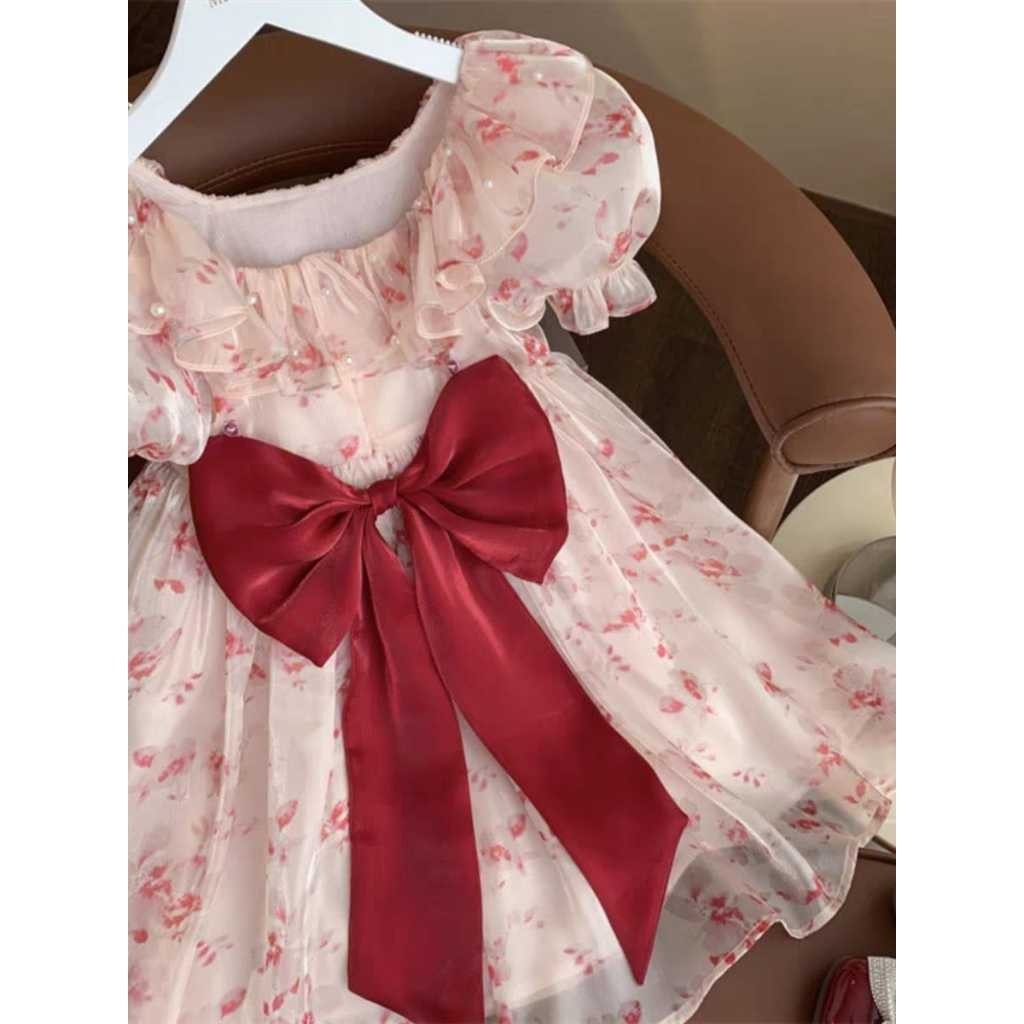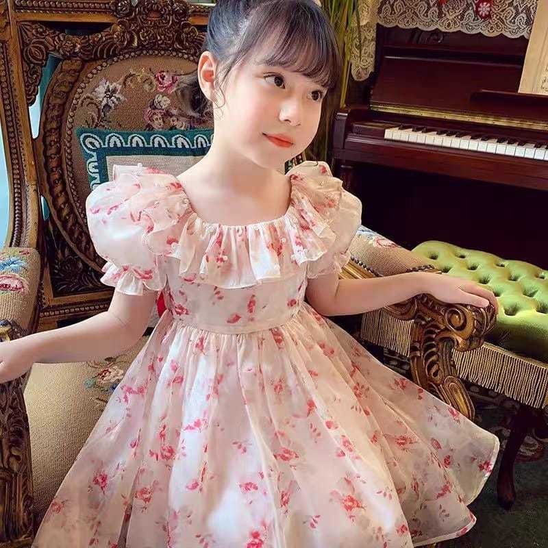Dr20, Dress Anak Perempuan Gaun Pesta Sifon Floral Bunga Ruffle Alure