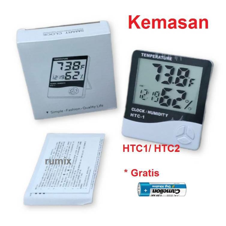 HTC-1 HTC-2 THERMOMETER HYGROMETER TEMPERATURE HUMIDITY METER SUHU KELEMBABAN JAM ALARM HTC1 HTC2