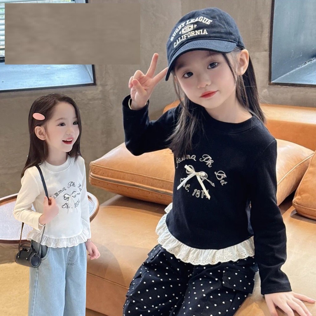 Baju Anak Perempuan Lengan Panjang Yuna Ribbon Pita Strech Korea Style
