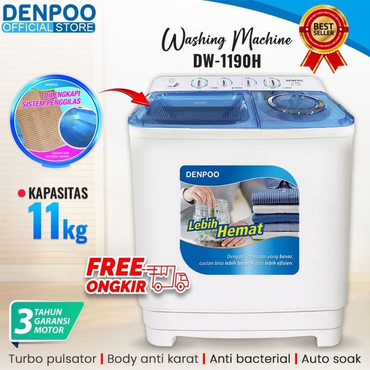 DENPOO MESIN CUCI 2 TABUNG DW 1190H NEW 11KG