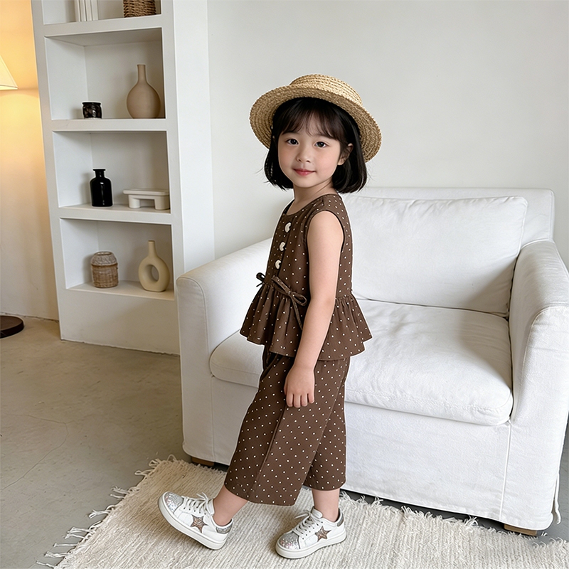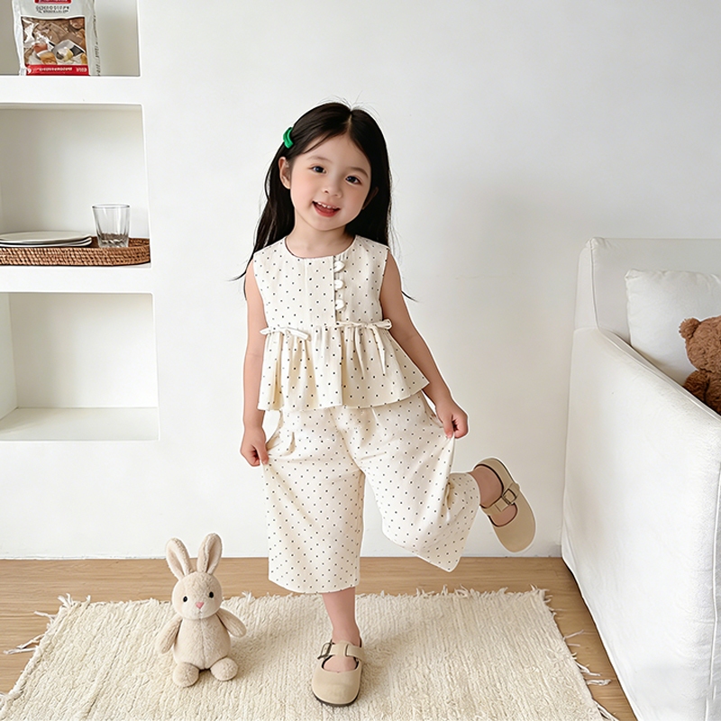 Balale Korean Style Setelan Anak Permpuan Katun Polkadot Nyaman | Baju Bayi Girl Setelan Atasan Ysd98765