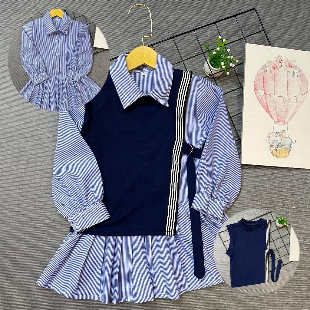 Dress Anak Perempuan Filobee Motif Salur Rompi Navy Bisa Lepas