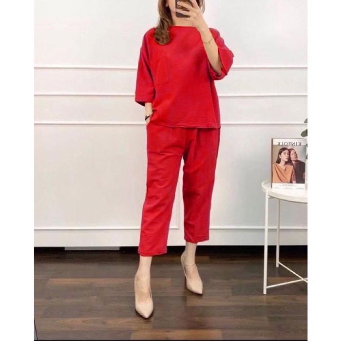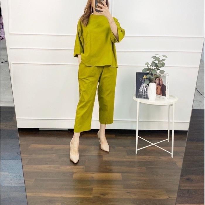 NILTA SET TOP+PANTS SETELAN ONE SET WANITA RAYON - COZIE AVOCADO