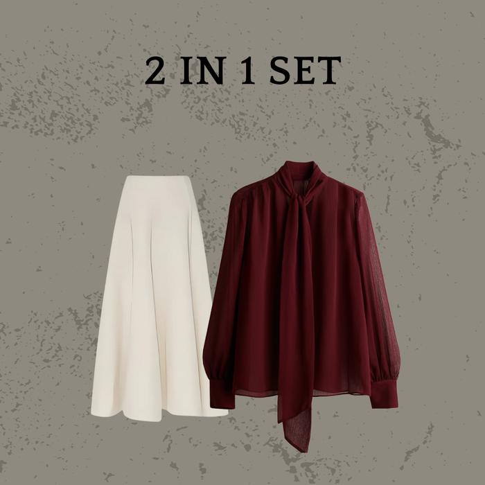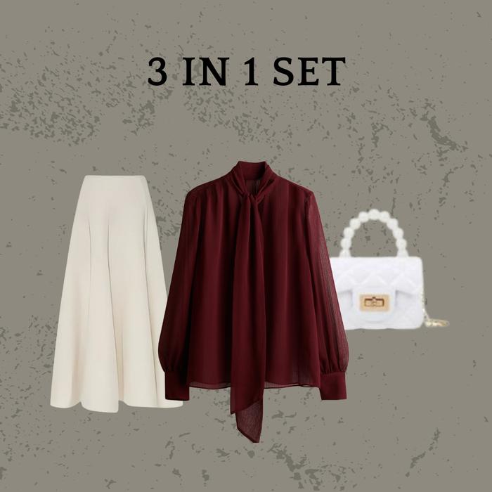 3 IN 1 SET CAMILLE OUTFIT BLOUSE + ROK + TAS OUTFIT ONE SET KECE KEKINIAN KOREAN STYLE - BLOUSE