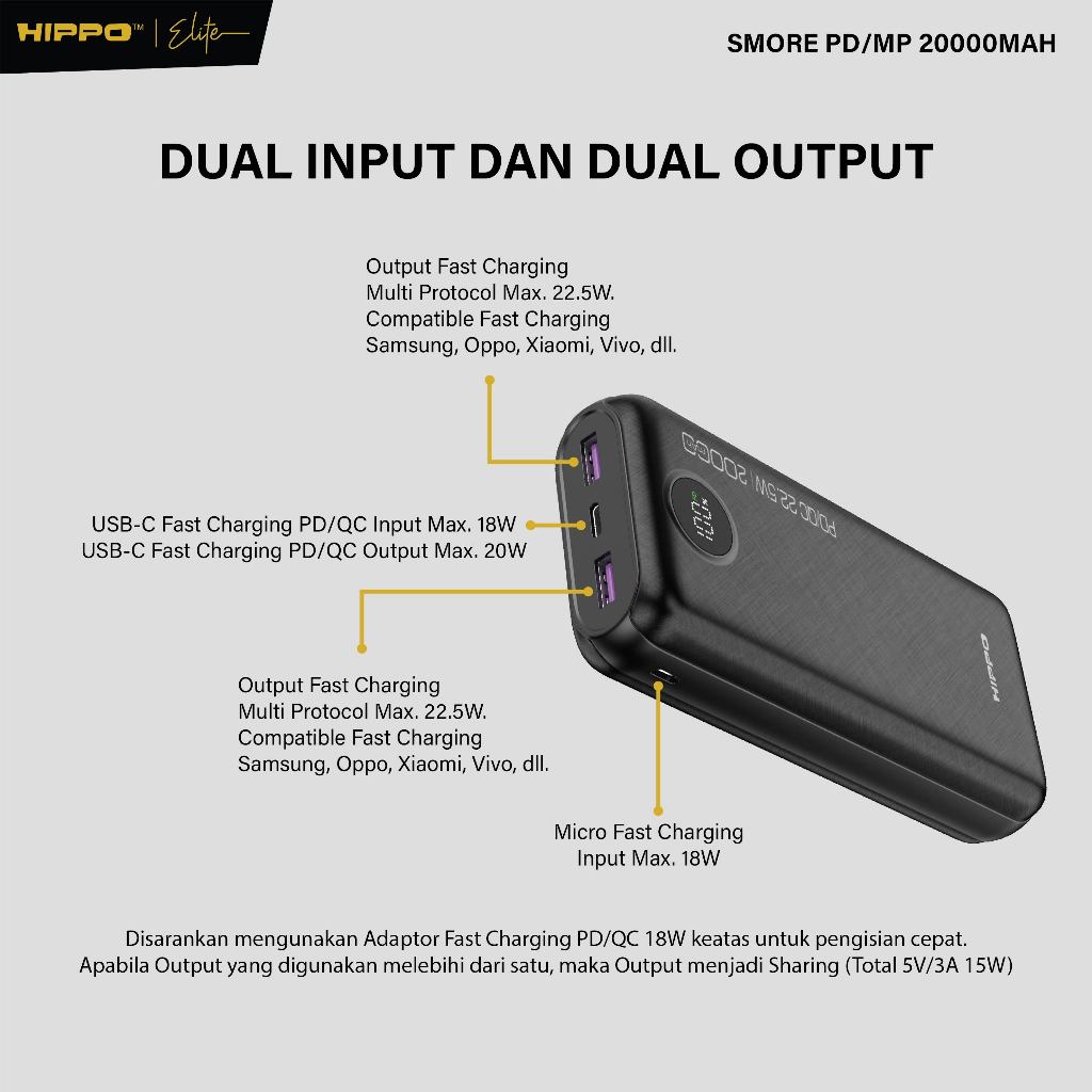 Powerbank Hippo Smore PD 22,5W 20000mAh Quick Fast Charging Type C Power Delivery QC 5