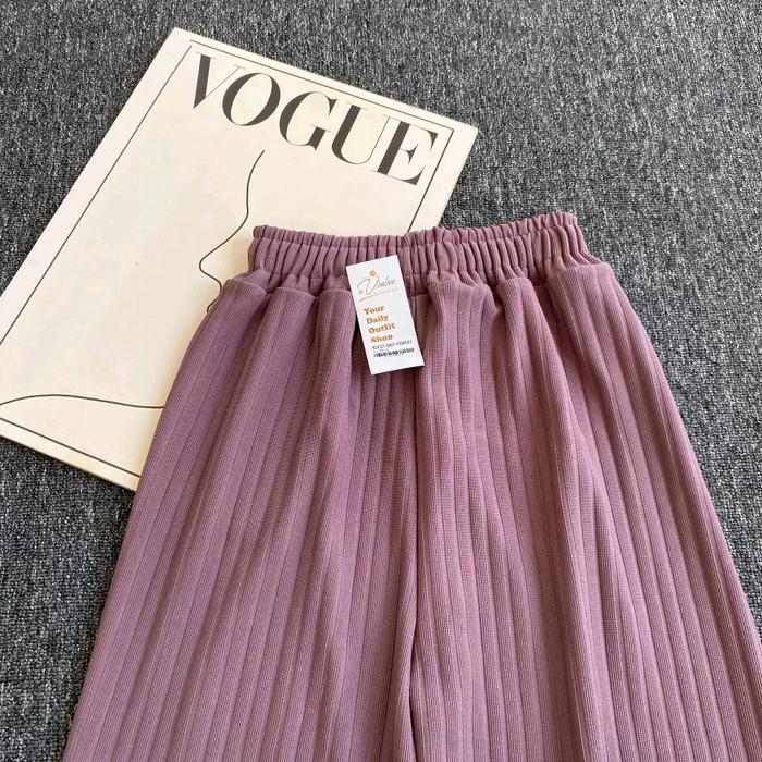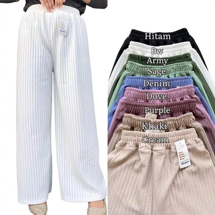 CELANA KNIT HORNET PANJANG SALUR BESAR BAWAHAN WANITA - FIT M-XL - HITAM, ALL SIZE XL