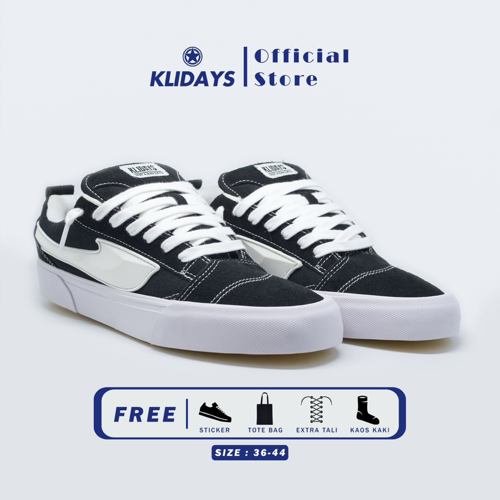 Klidays - Sepatu Gemuk Pria Wanita Unisex Cloud Suede Black White Sneakers Casual Original Terbaru Keren