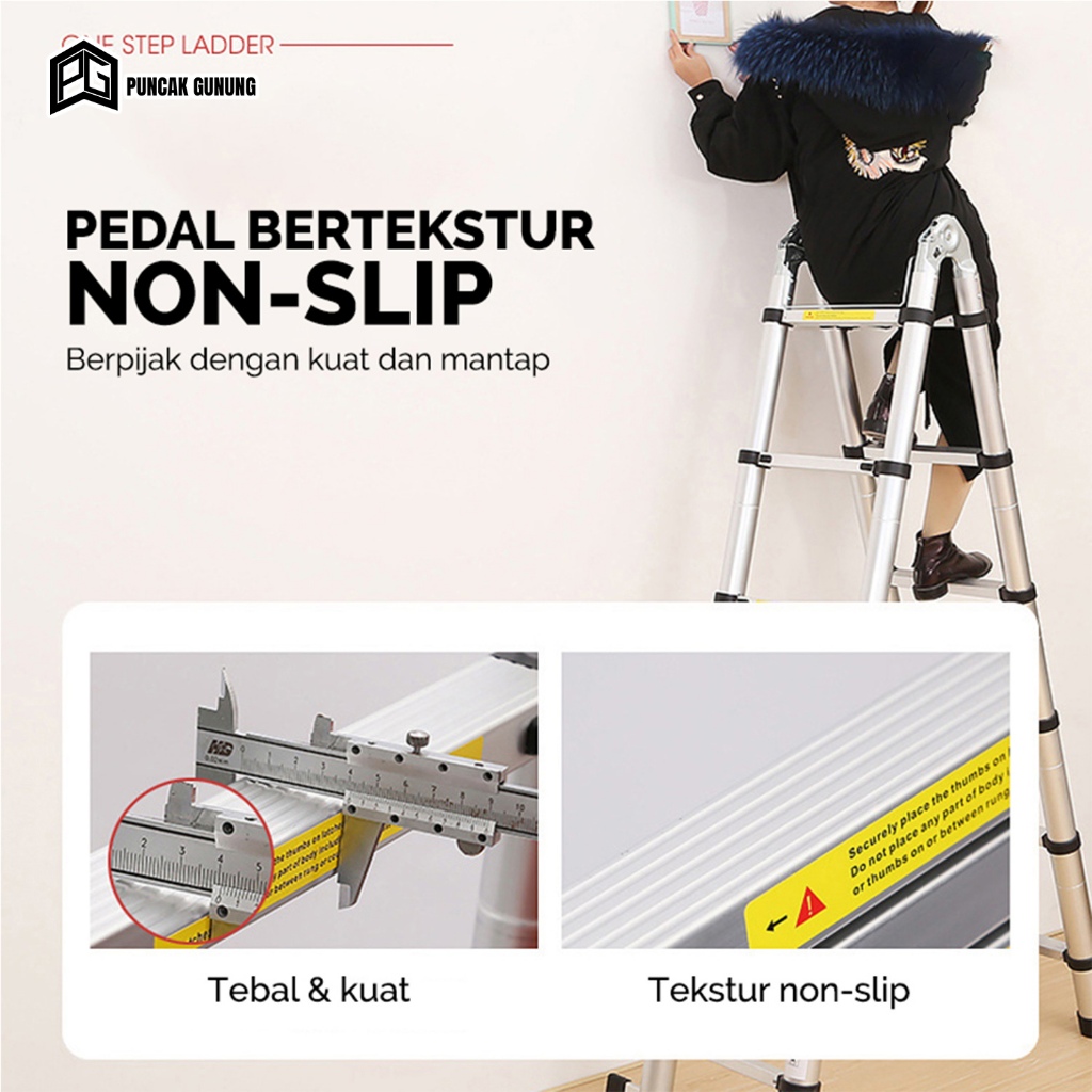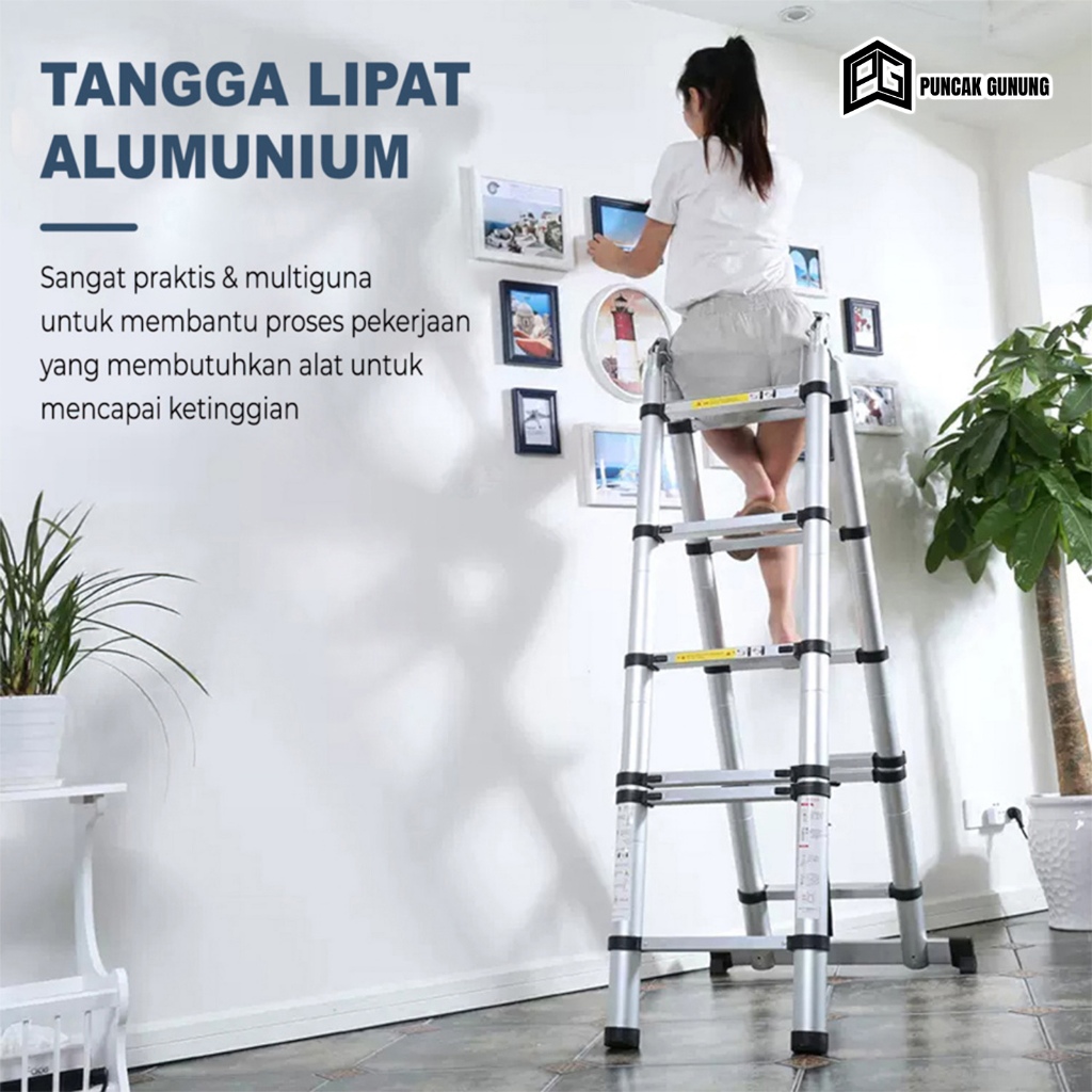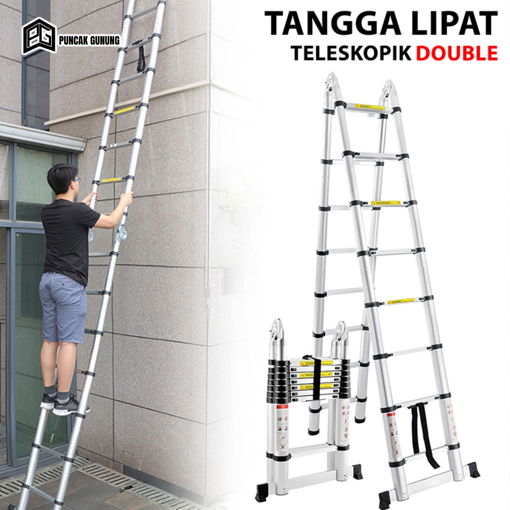 TANGGA LIPAT ALUMINIUM TELESKOPIK GANDA 4.4M L 5 METER DOUBLE LADDER PORTABLE KOKOH - T2A1/T2B1/T2C1