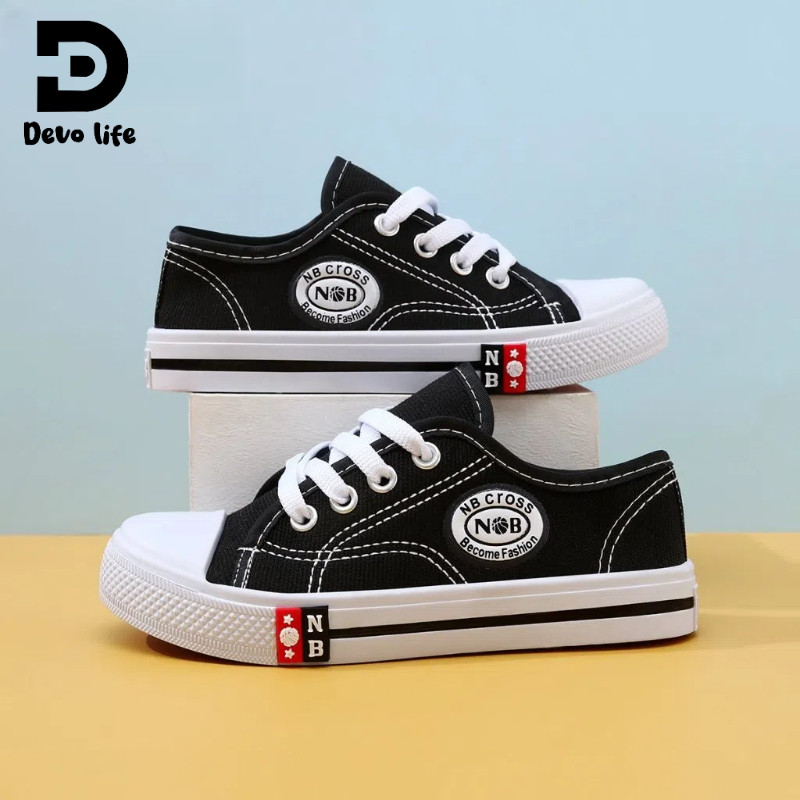 Devo Life - Sneakers Anak Low Kiddy Cewek Cowok | Formal Tali Bahan Canvas Sneakers Sekolah