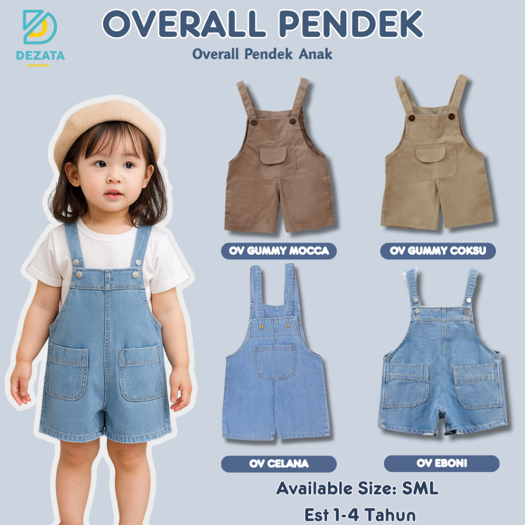 Dezata Overall Pendek Overall Anak 1-4 Tahun Baju Kodok Anak Perempuan Jumper Anak Cewek Jumpsuit Anak Overall Eboni