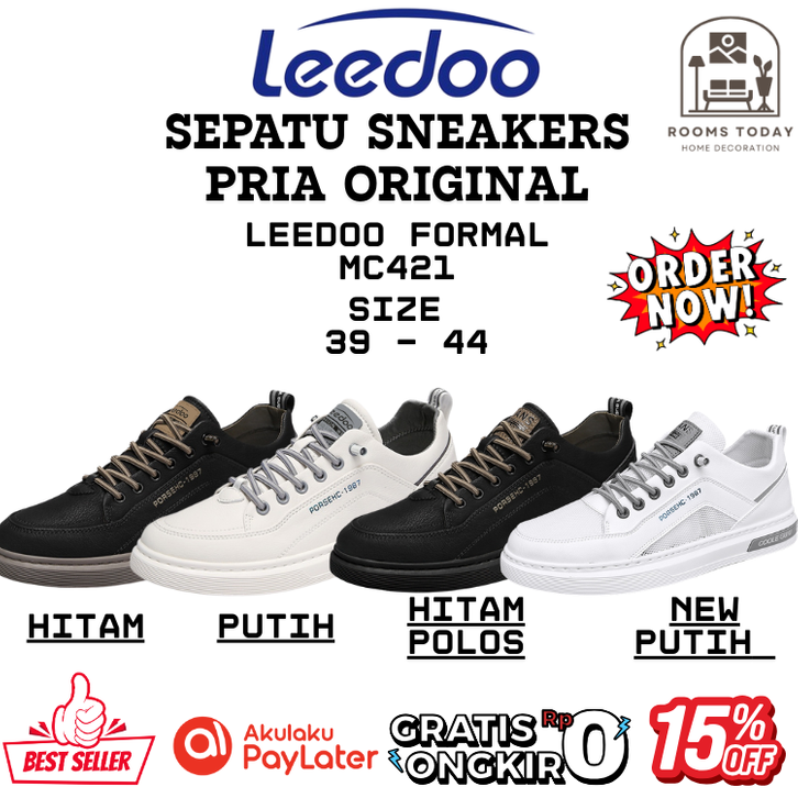 Sepatu Pria Sneaker Original Leedoo Sepatu Sneakers Pria MC421 Formal Premium Muda Kekinian Size 39 - 44 Best Seller