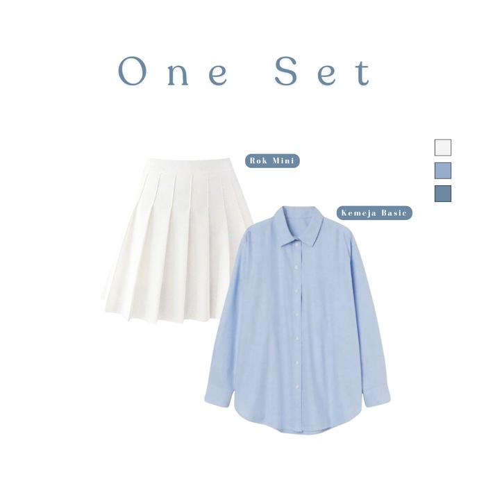 ONE SET BLOOM 3IN1 KEMEJA BASIC ROK MINI TANKTOP CROP GAYA KOREAN GIRL SIMPLE & STYLISH SO2A30 - FULL SET