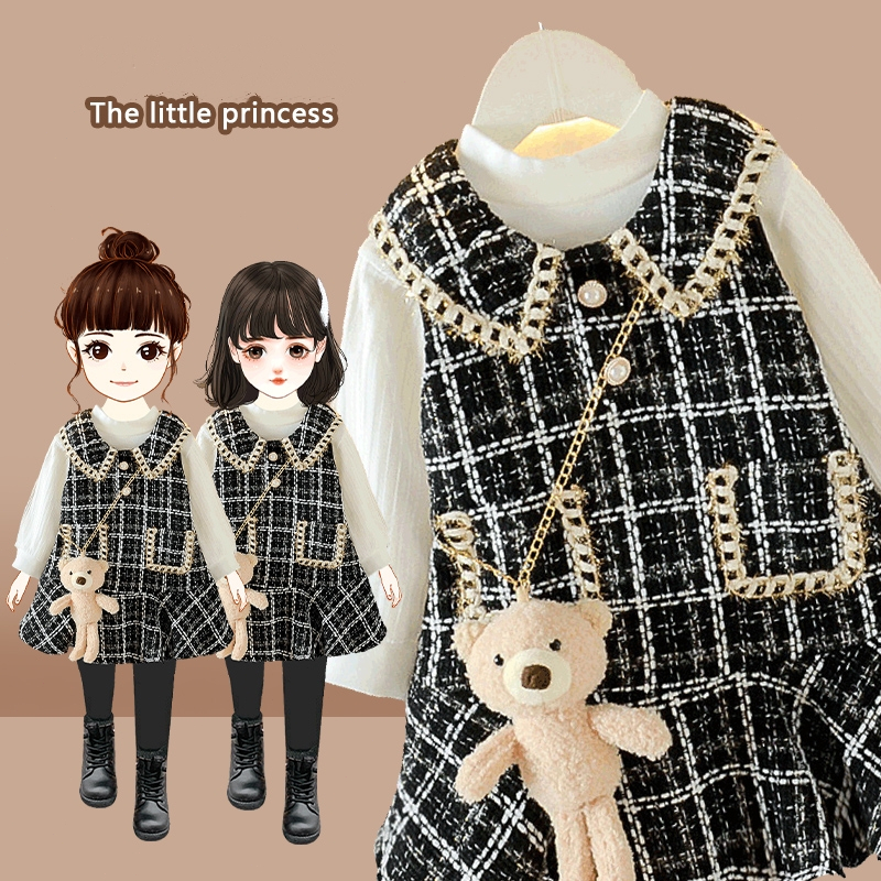 Dress Anak Perempuan Usia1-4 Thn/Baju Hanfutweed Tas Boneka Setelan 2Ini1 Pesta Premium Import