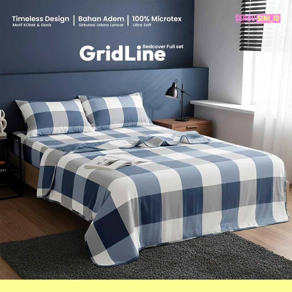 SERBU SINI Set Sprei Bedcover Sprei Set Selimut Motif Kotak-Kotak Ukuran 120CM 160CM 180CM x 200CM