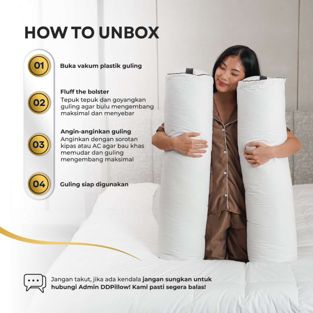 DDPillow Guling / Bolster Hotel Bulu Angsa Asli / Guling Keras, Type Grand (Firm Hard)