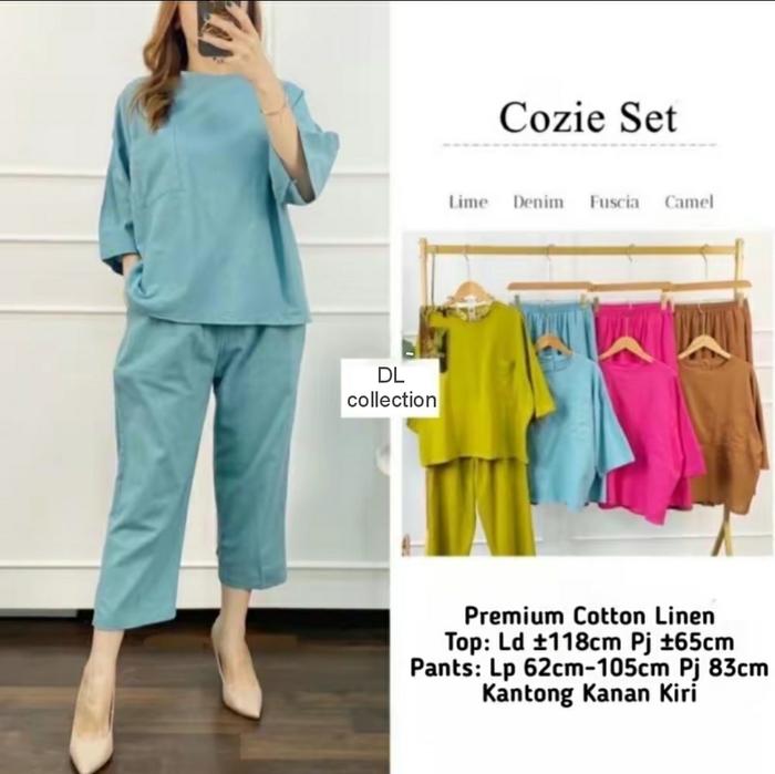 COZIE ONE SET SETELAN WANITA TERBARU KATUN LINEN PREMIUM CESIA PRODUK TERLAKU TERLARIS KEKINIAN ONE SET MURAH TERMURAH - COZIE MILO, STANDAR BB 45-70