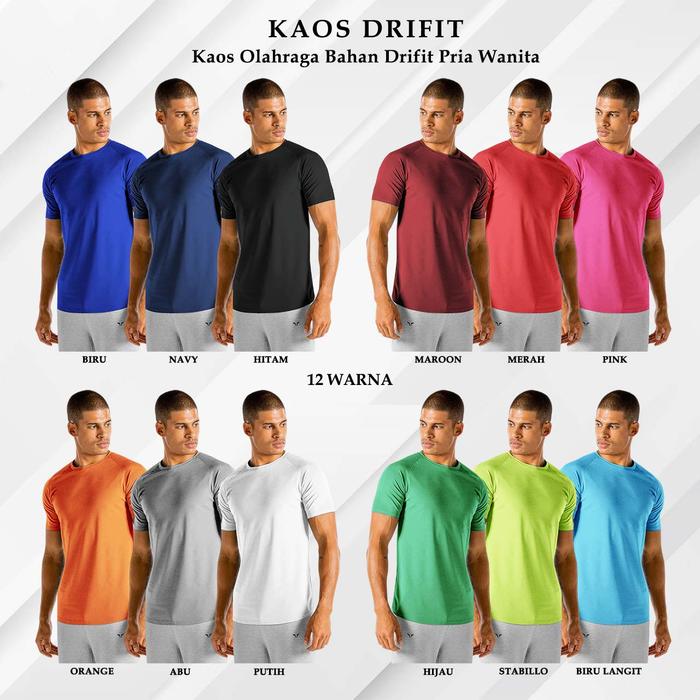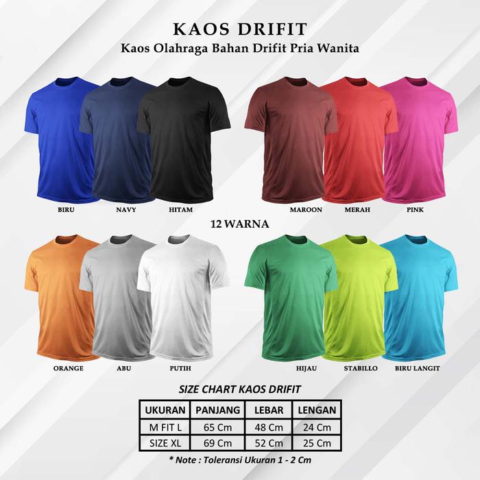 KAOS T-SHIRT RUNNING LOGO BAJU OLAHRAGA PRIA WANITA BAHAN DRYFIT PIQUE QUICK DRY SRT FUTSAL SEPAK BOLA - BIRU MUDA, "M/L" LOS