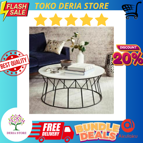 [Star] Meja Tamu Minimalis Aesthetic Meja HPL Marmer Minimalis Meja Ruang Tamu Coffe Table Meja Diameter 80 FREE ONGKIR