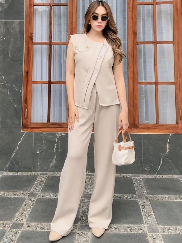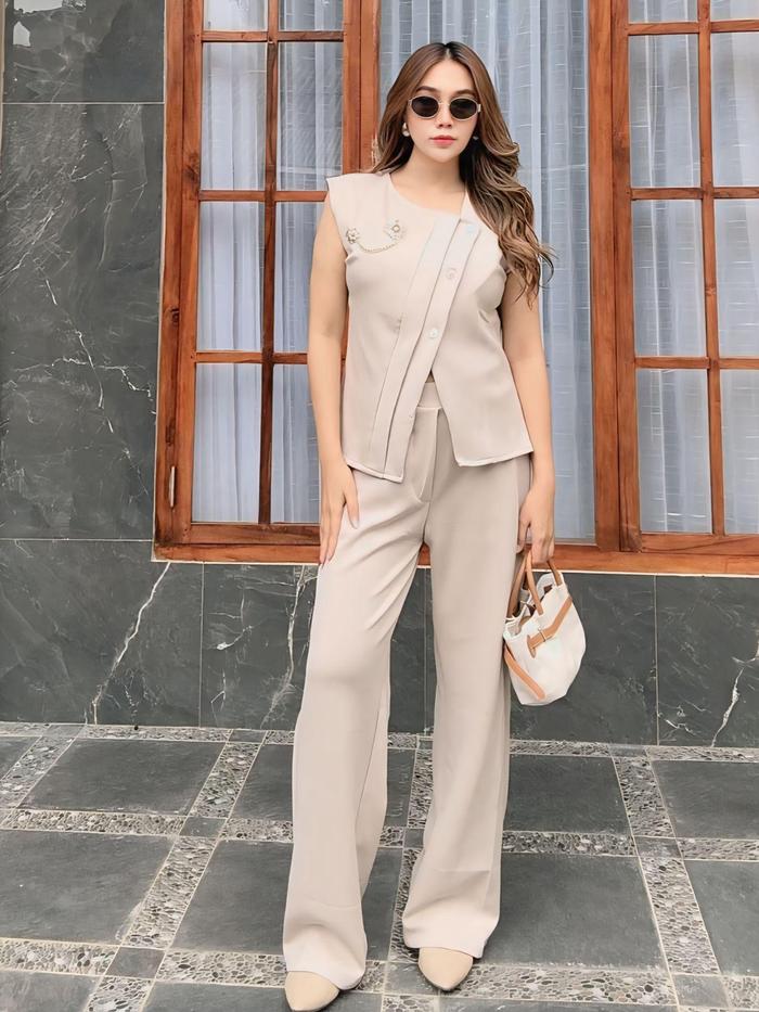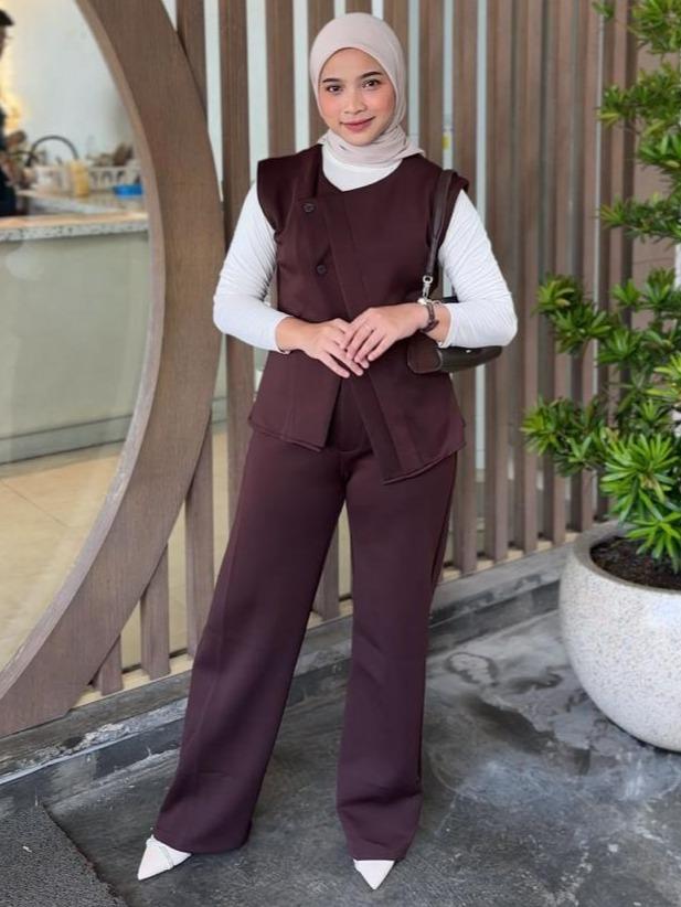 STELLE - LIORA ONE SET - SET VEST WANITA - SETELAN CELANA WANITA - VEST WANITA - ONESET SCUBA - CELANA SCUBA - HITAM, M