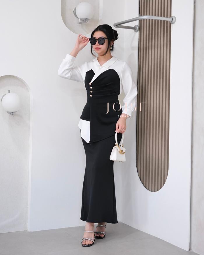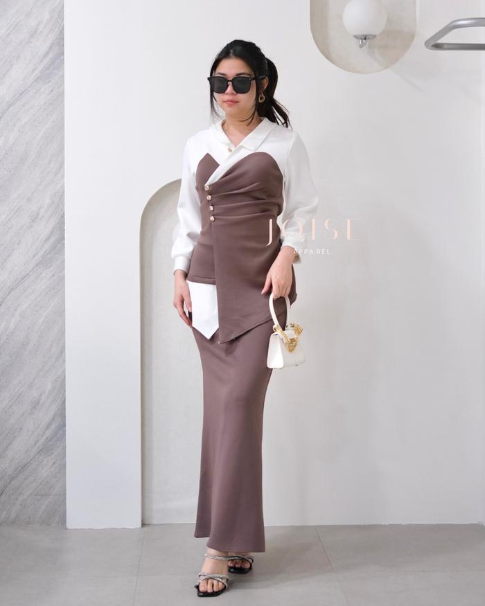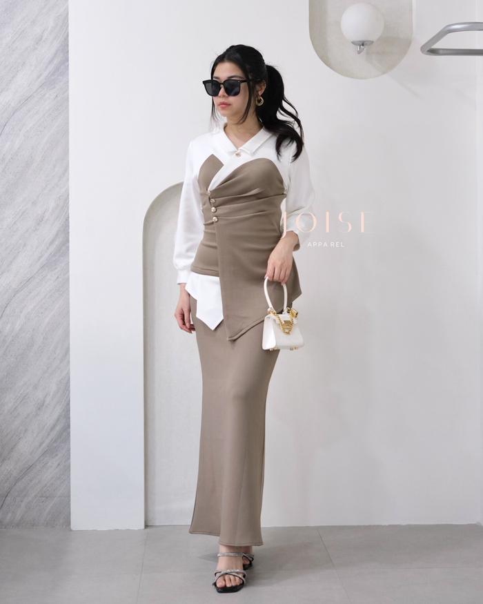 SET JOISE - LEXIE SET / SETELAN ATASAN + ROK WANITA / BAJU SETELAN ONE SET CASUAL / SETELAN ROK MERMAID BASIC LOS STRETCH PANJANG - CREAM, ALL SIZE LD 92-110