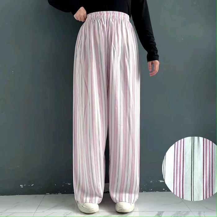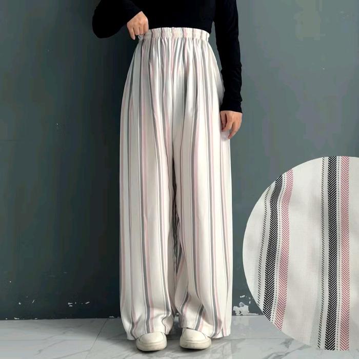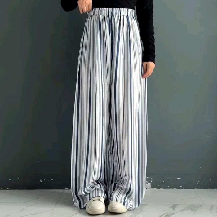CELANA KULOT RAYON HOMMY DENGAN DESAIN GARIS-GARIS ELEGAN DAN NYAMAN UNTUK DIPAKAI SEHARI-HARI - BIRU STRIP NAVY, ALL SIZE
