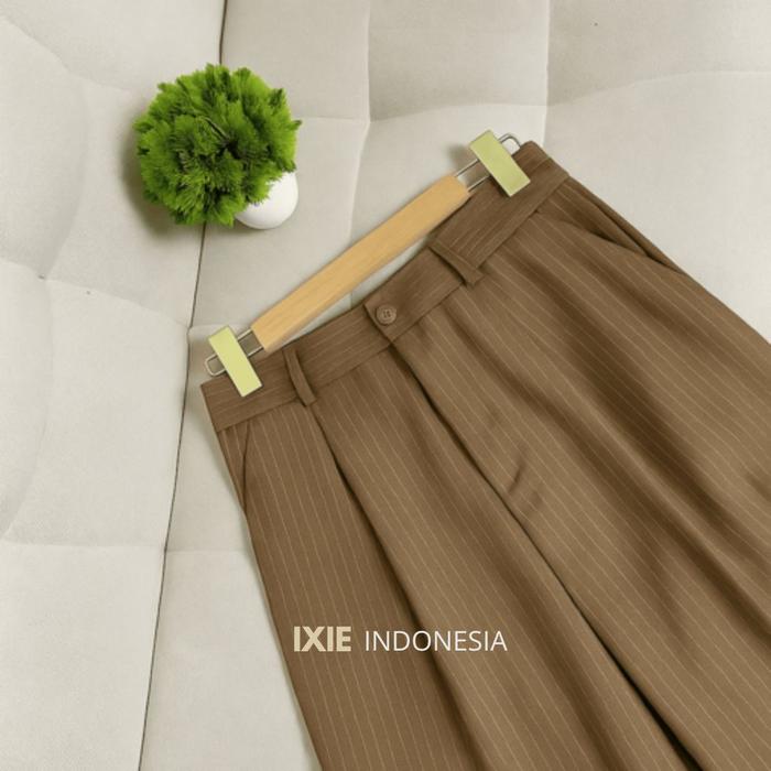 JUMBO STRIPE - LOOSE PANTS STRIPE JUMBO TROUSER WANITA-CELANA ANTI KUSUT -CELANA STRIPE JUMBO WANITA - HITAM, M/L