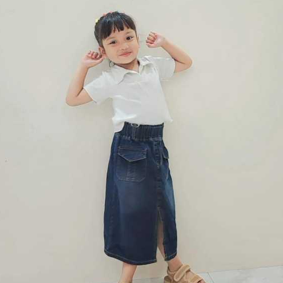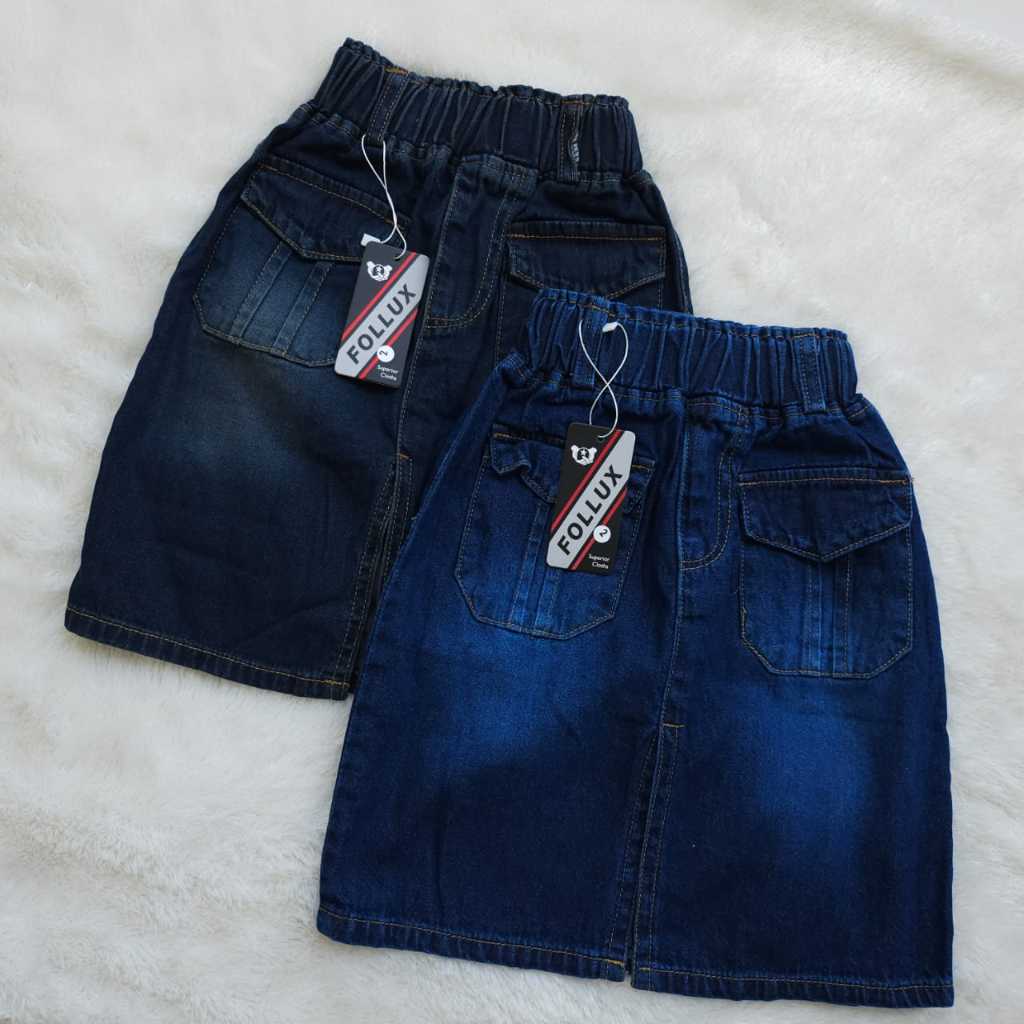 Follux - Rok Jeans Anak Perempuan Skort Span 7/8 Anak Cewek Model Saku Depan Usia 1 - 9 Tahun