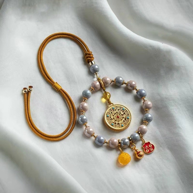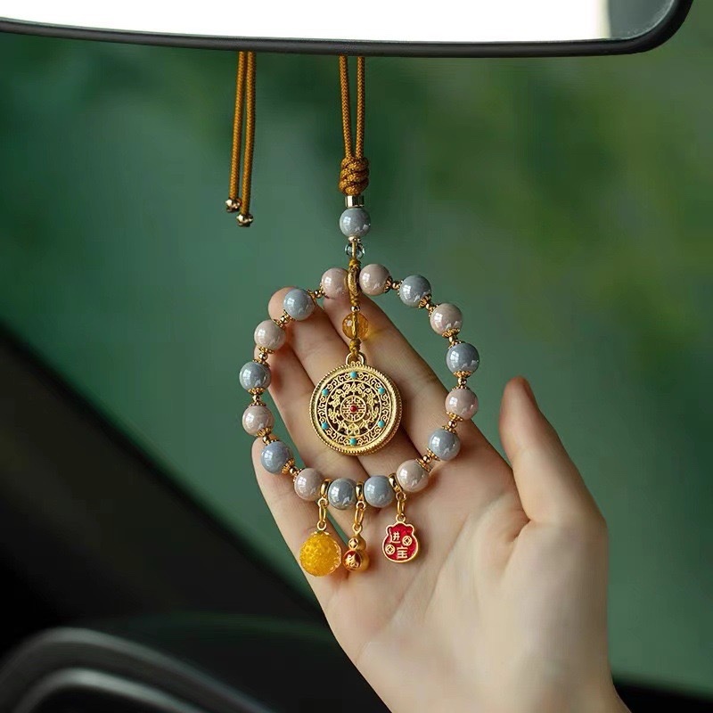 [SPRINTT] GM005 Gantungan Mobil Ping An Liontin Wu Lu Cai Shen/Lima Dewa Kekayaan Gelang Mutiara Premium Keamanan Pejalanan Gantungan Spion Mobil Pria Wanita
