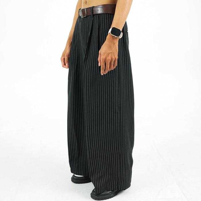 STRIPE PANTS - GELD IMRTAINT | CELANA PANJANG STRIPE WIDELEG TROUSER PRIA DAN WANITA CASUAL HITAM KOTAK - MEDIUM , BLUE NAVY