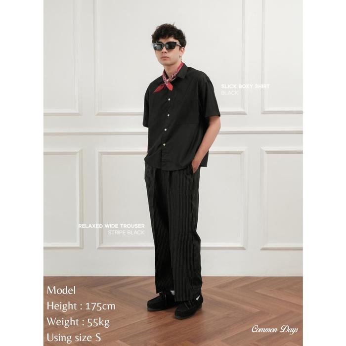 COMMON DAYS | RELAXED WIDE TROUSER PANTS STRIPE BLACK - S STRIPE BLACK