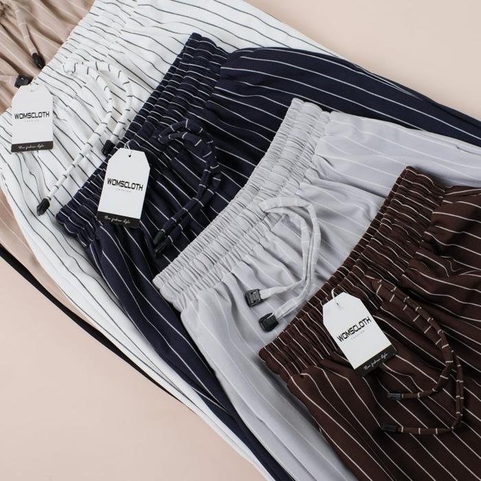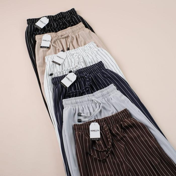 WOMSCLOTH - EVERYDAY PANTS - STRIPE PANTS BANGKOK - CELANA PANJANG WANITA BAGGY KANTOR KULIAH MOTIF GARIS KULOT PINSTRIPE - CELANA FORMAL CASUAL WANITA LOOSE BASIC - HITAM, ALL SIZE BB 40-70KG