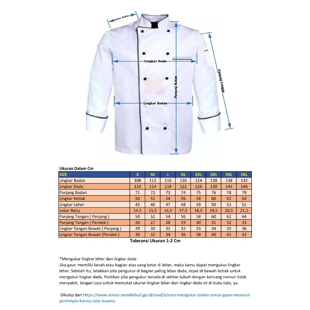 Srm Baju Koki / Chef Work Lis Body Fit Unisex Bahan Drill Uk Size