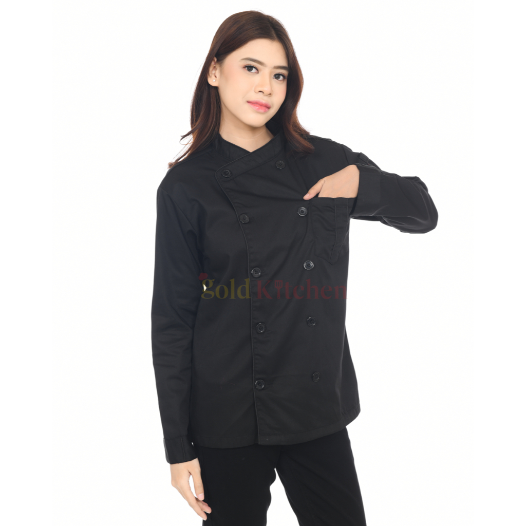 Chef Jacket Kemeja Kerja Baju Koki Pria Wanita Lengan Pendek Panjang Bahan Drill Model Mandarin