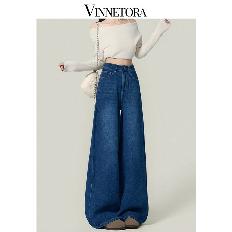 VINNETORA Straight Jeans Highwaist Kulot Loose Celana Wide Leg Jeans Wanita 8817