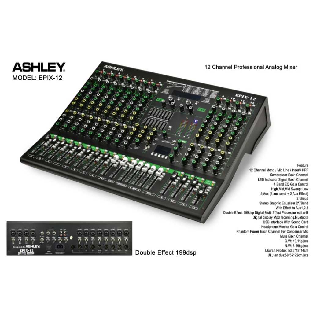 MIXER AUDIO ASHLEY EPIX12 EPIX 12 ORIGINAL DOUBLE EFFECT