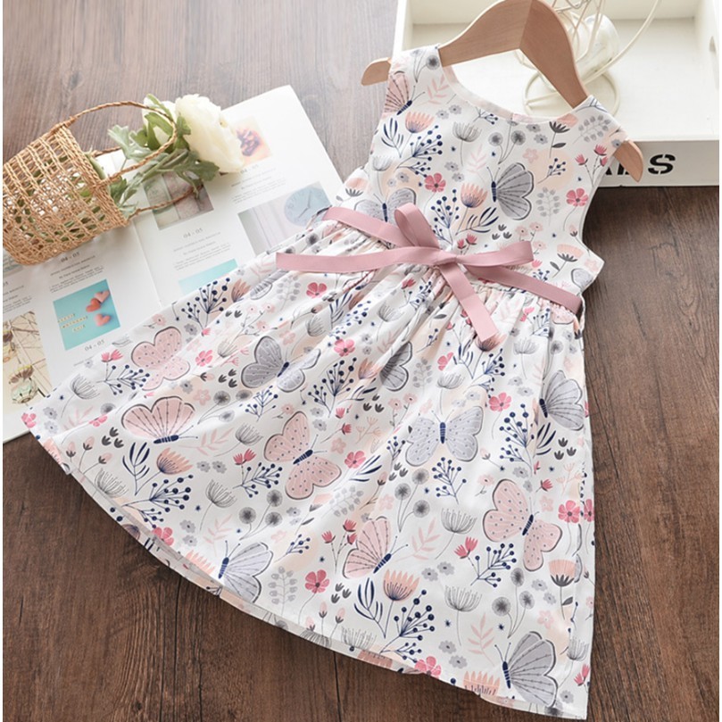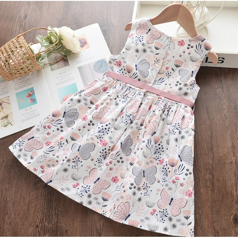 Dress Anak Perempuan Gaun Putri Motifkupu-Kupu Berbahan Katun Murni Rok Anak Alakorea Musim Panas 1-6 Tahun