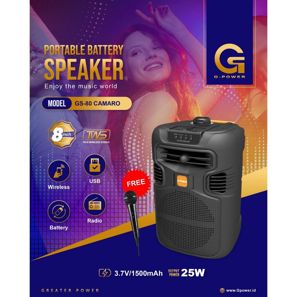 G-POWER Speaker Bluetooth 8 inch Gs-80 Camaro Free Mic Kabel Karaoke Set Portable Bagus Jernih